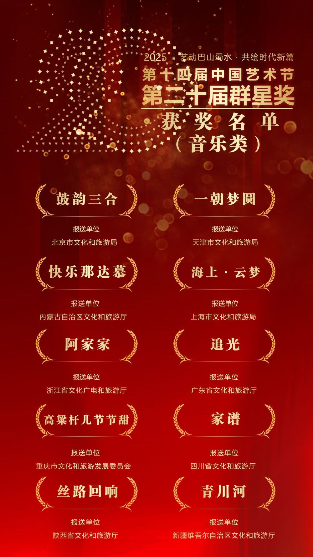 11月4日,由文化和旅游部主办的第20届星光奖获奖名单正式揭晓。