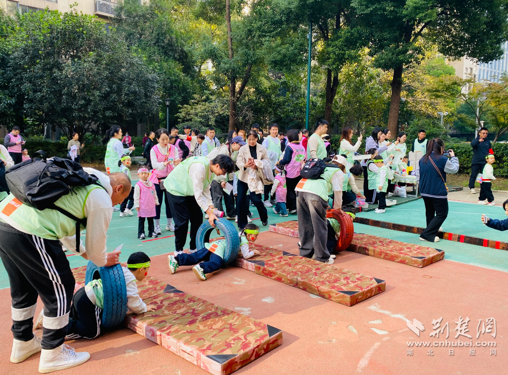 荆楚网(湖北日报)(记者何鹏、通讯员马文)“小红军,冲锋!” 11月14日上午,三花都社区红旗飘扬,江汉区智乐幼儿园“孩子红心”亲子趣味运动节在此开幕。所有孩子和家长化身“小红军”,沉浸在12个红色主题关卡中,让家长和孩子共同努力,将红色精神渗透到孩子们纯真的心中。