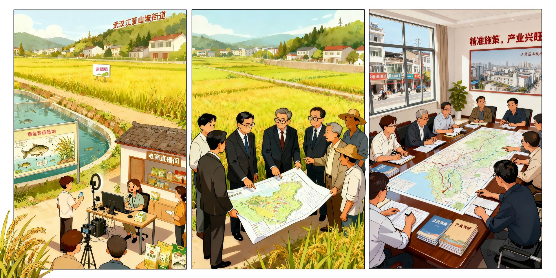 将“规划图”转变为“施工图”,并引导组织确定方向。区域振兴的高层设计是大“规划”,但如果没有基层组织的精准“翻译”,很容易出问题。组织的第一个任务国家领导就是当好“总设计师”和“项目经理”,把宏观经济政策细化为适应本地实际的“建设规划”。为此,要求党的基层组织要“上情下情”,既深刻领会中央精神,又准确认识村庄的资源禀赋、产业基础、文化特色。例如,武汉市江夏山区就实施了“五类资源”分类政策。它是一种组织力量,在详细研判的基础上,将“产业繁荣”的宏观需求转化为“柑橘田、富稻田、硒化、闲置农业建筑振兴”等一系列具体、可执行的项目。组织领导力就是将“通用的徒手笔触”融入其中把高层设计融入基层实践的“精心绘制”,确保振兴的每一步都走在正确的轨道上。