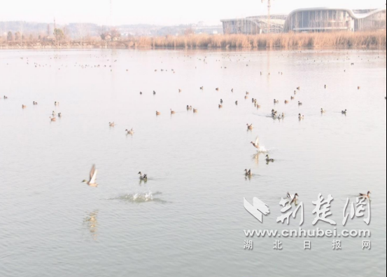 荆楚网(湖北日报)讯(通讯员赵霁、王超)钟祥市莫草湖国家湿地公园近日迎来候鸟迁徙高峰。大量候鸟飞往净月湖(南湖)、磨顶湖(北湖)核心区栖息、觅食,形成了人与自然和谐共生的生态格局。