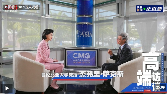 哥伦比亚大学教授杰弗里·萨克斯接受中央电视台《高端访谈》节目专访。 40多年来,他定期访华,深入研究中国经济,积极评价中国改革开放。您对中国社会经济发展的信心来自哪里?一些国家试图遏制中国的发展。您为何评论“这个想法很荒谬”?萨克斯先生如何解读他的要点,指出所谓“中国威胁论”背后的错误逻辑,并预见中美关系的未来发展?今天(10月10日)晚上9点30分,我们将在旗舰台《高端访谈》中采访哥伦比亚大学教授杰弗里·萨克斯。看看它!